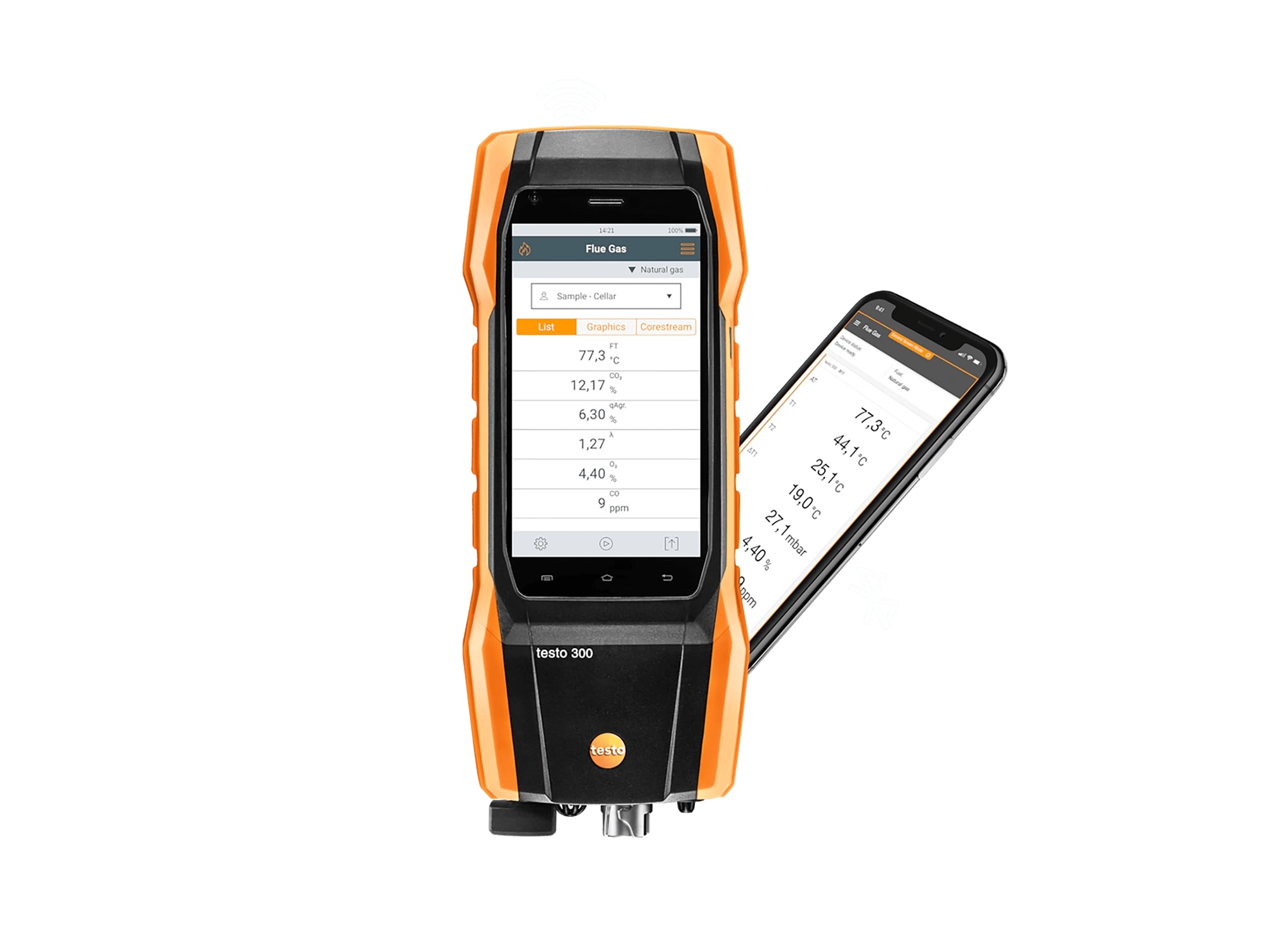 Parallel zur Abgasmessung mit dem testo 300 können mit den testo Smart Probes bis zu vier zusätzliche Parameter erfasst werden.