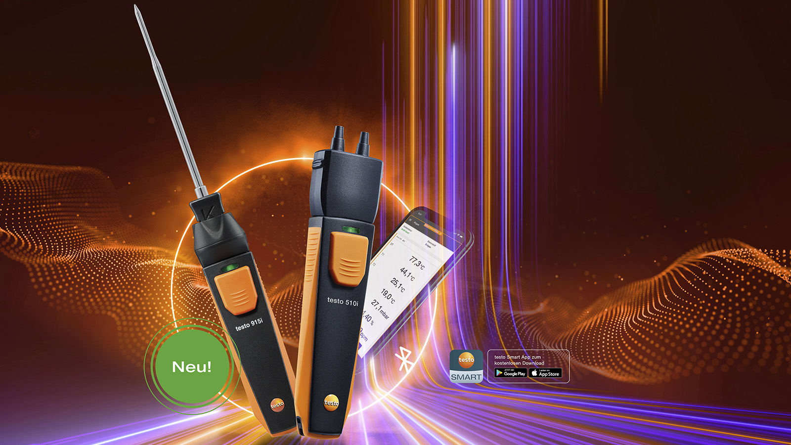 全新上市:testo 智能探头暖通空调套件,为您提供快速、灵活和无线的温度和压差测量。与 testo Smart App 一起,测量值都可以直接发送到您的智能手机或平板电脑上,并可以立即通过电子邮件发送。